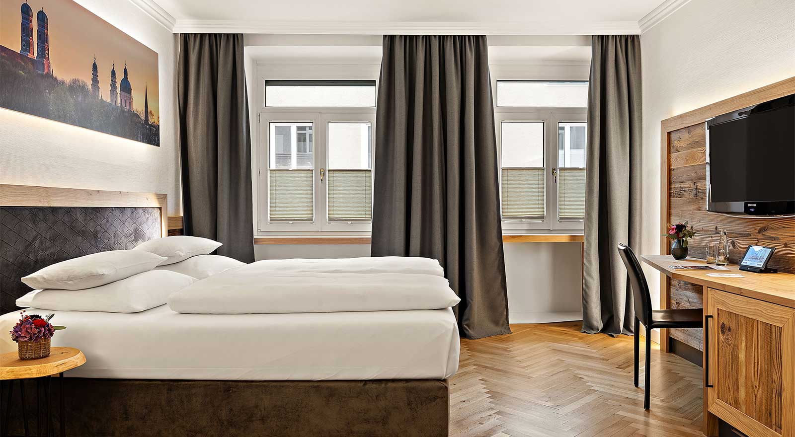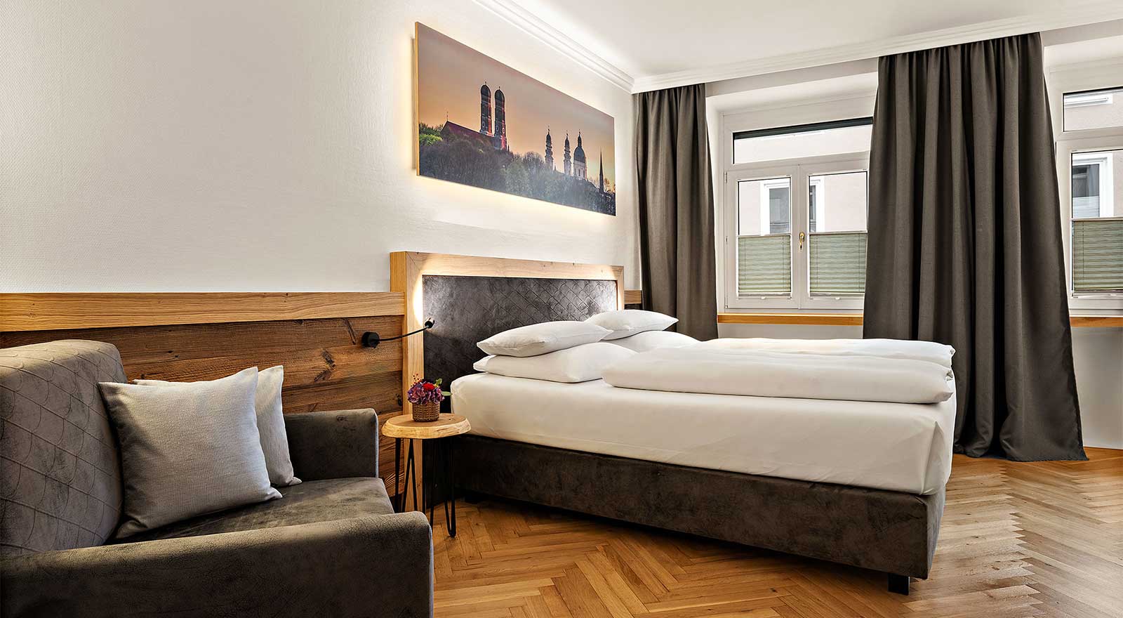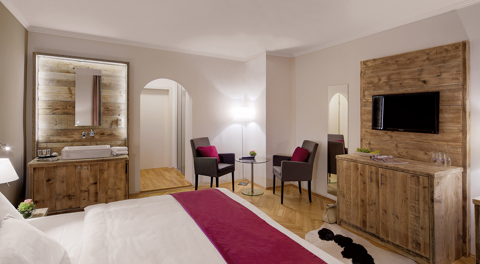 Suchen Sie das Besondere? Dann werden Sie sich in unseren großzügigen Doppelzimmern Alpenchic Comfort rundum wohlfühlen. Der einzigartige Charme dieser Zimmer entsteht durch die gelungene Kombination aus modernem Alpenstil und liebevollen Details, die jedes Zimmer zu etwas Besonderem machen. Bei der Einrichtung haben wir großen Wert auf natürliche, nachhaltige Materialien gelegt – in Verbindung mit einer harmonischen, warmen Farbgestaltung entsteht so eine Atmosphäre zum Ankommen und Durchatmen.
